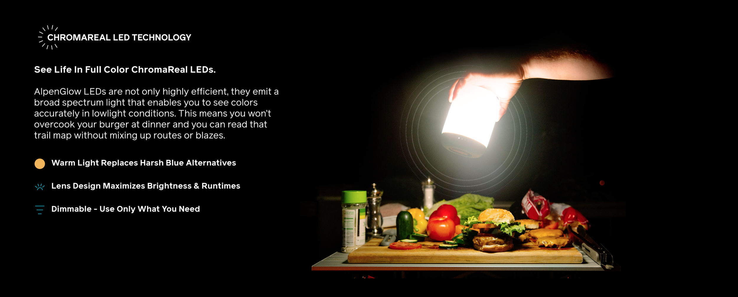 See Better At Night - ChromaReal LEDs emit broad spectrum light to lowlight conditions. Very Useful for nighttime cooking.