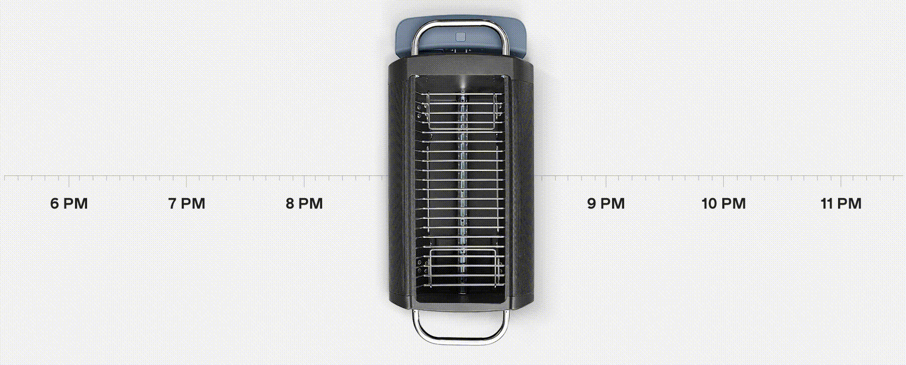 This refers to the fan running on the lowest setting on a single charge of the airflow pack. The airflow pack is easily rechargeable via USB so runtimes can be extended when you have access to an external power source like a Charge 80 powerbank, BaseCharge Power Station, or SolarPanel 100 (you can also recharge from a wall outlet at home). If your airflow pack runs out of juice, FirePit will still function but without the smoke-eating design in action.